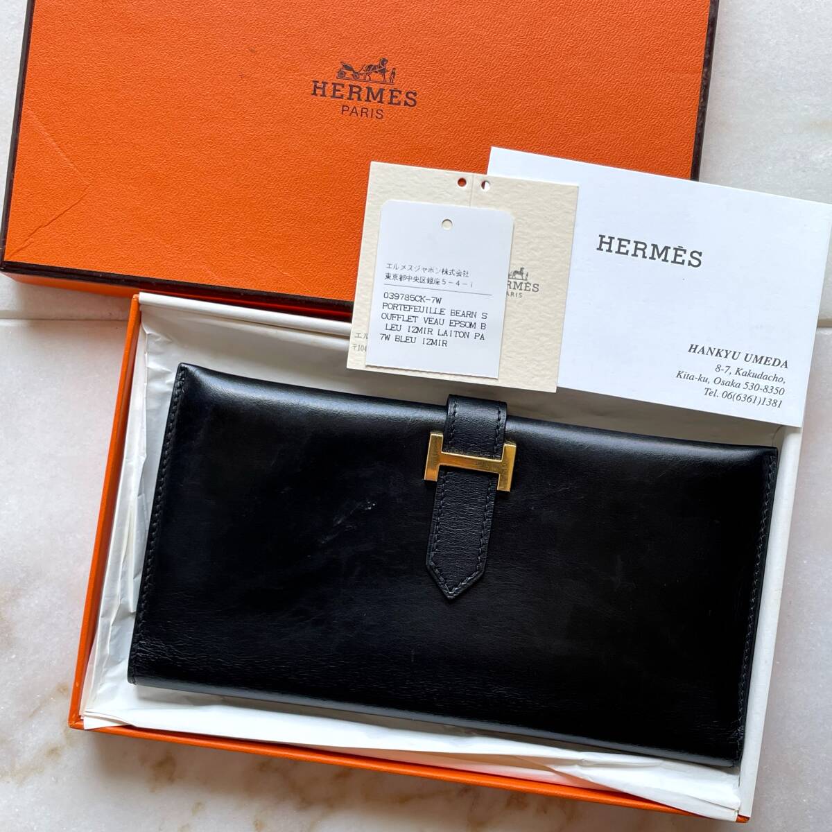 - HERMES エルメス ベアンクラシック ボックスカーフ 黒 長財布 □B刻印