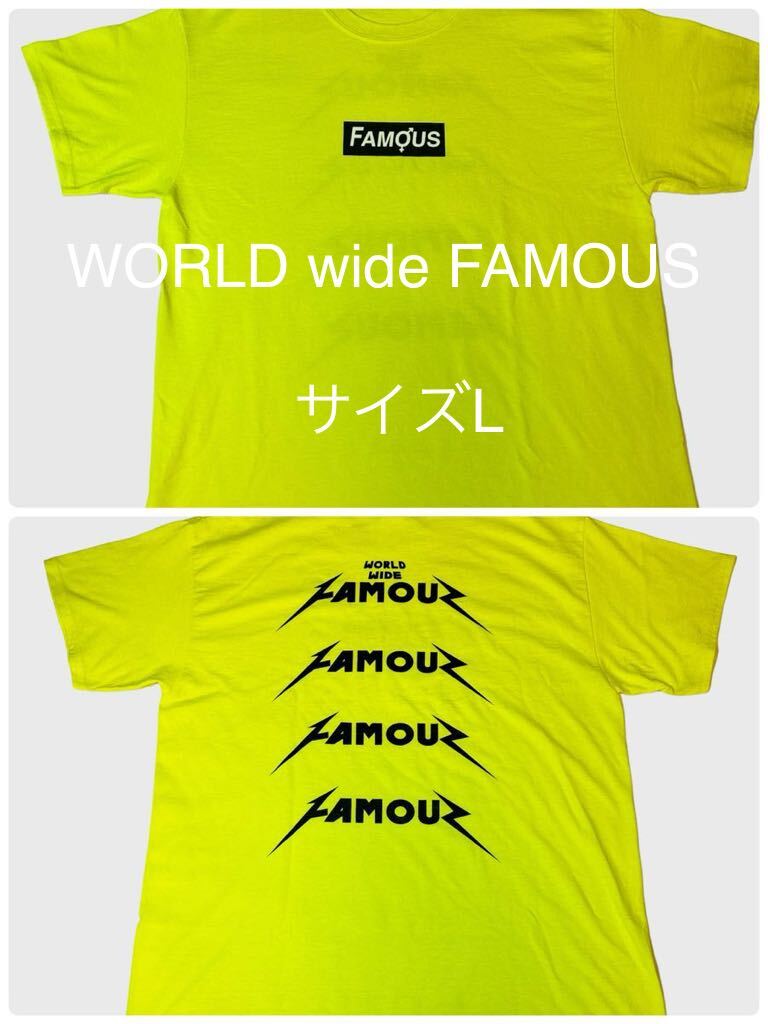> ◆オススメ◆WORLD wide FAMOUS BOXロゴTシャツ バックプリント有 蛍光イエロー サイズL
