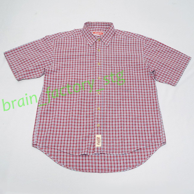 > Coca-Cola(コカ・コーラ)/タータンチェック 半袖シャツ-1998/エンボス加工/sizeL-(キレイめ)/管NVPQ