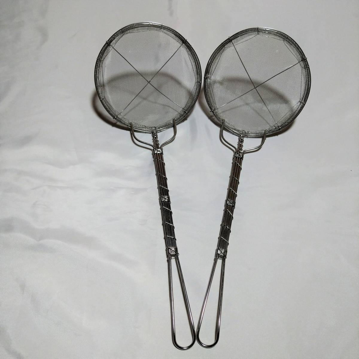- №5 未使用、保管品 業務用 厨房備品 かす揚げ ステンレス製(18-8)細目 直径15㎝/2点セット