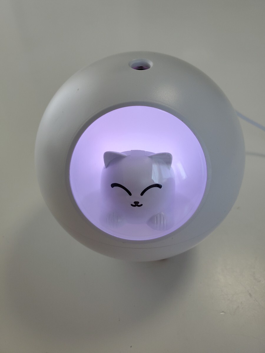 - 点検の為に使用 新品でした!! 加湿器 卓上 可愛い 猫ちゃん ネコ レインボーにライトアップ♪ 乾燥対策 USB接続 白猫 お買い得