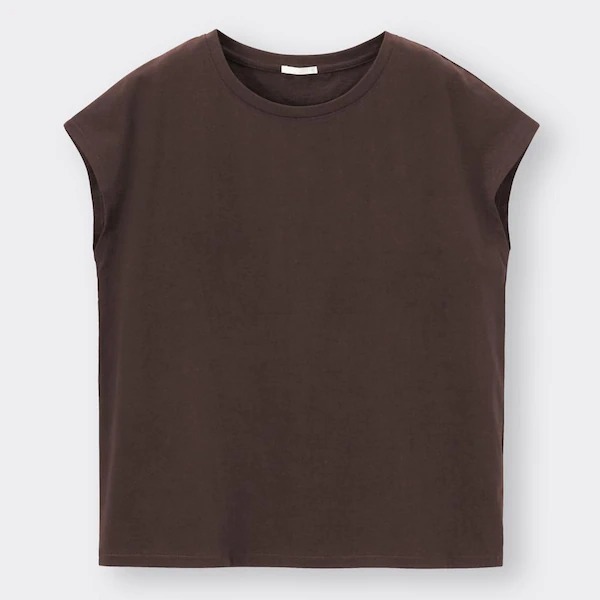 - 新品タグ付き GU ジーユー マーセライズドT(半袖) キャップスリーブTシャツ 滑らかできれいな質感 綿100% 単品使いもインナーも ブラウン S