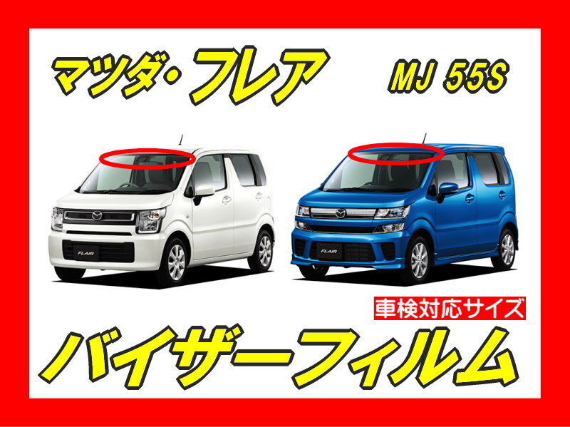 > ■ マツダ フレア( MJ55S )バイザーフィルム (日差し・ハチマキ・トップシェード)■カット済みフィルム ■貼り方動画あり