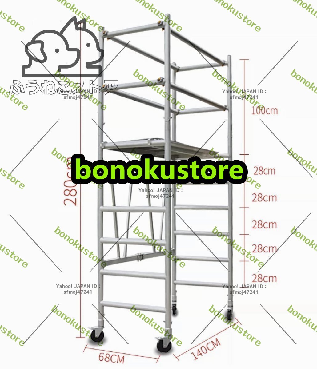 > 高品質 140*68*280cm折り畳み式 アルミ合金 プラットフォーム 昇降できる 足場 移動 工事 装飾 登る梯子