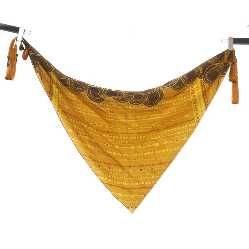 - ディースクエアード DSQUARED2 22AW 総柄プリント シルク タッセルスカーフ ストール UNI イエロー/ブラウン S83FU0005 国内正規