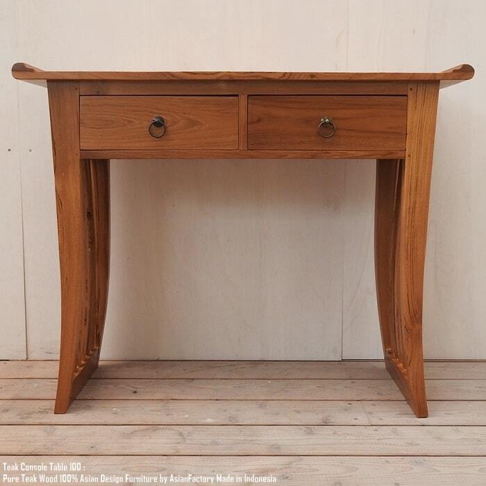 - チーク無垢材 コンソールテーブル2D100 NA ナチュラルブラウン 幅100cm 引出し2杯 チーク材 アジアン家具 勉強机 デスク サイドテーブル