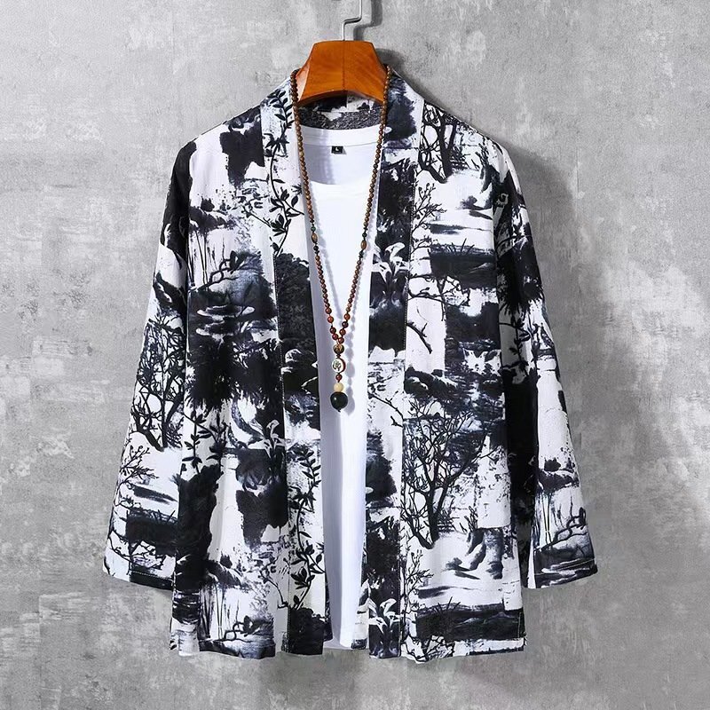 > LRM3052★新品メンズ シャツ カーディガン カジュアルシャツ 甚平 羽織 7分袖 浴衣 部屋着 花火大会 夏祭り ゆったり 大きいサイズ M~5XL