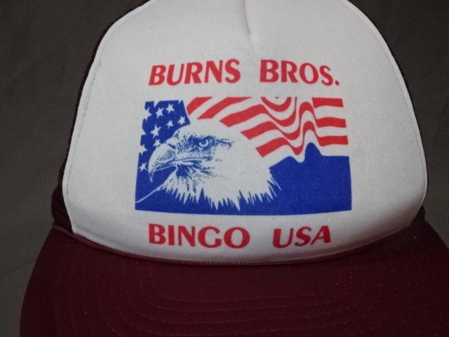 - 激レア USA購入 アメリカ ビンゴゲーム 【BURNS BROS. BINGO USA】 白頭鷹 星条旗プリント入り メッシュキャップ 中古良品