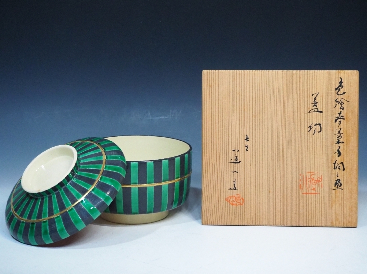 > 七世 高橋道八 【 金彩 色絵麦藁手蓋物 】 京焼 共箱 茶道具 懐石道具 和食器 未使用品