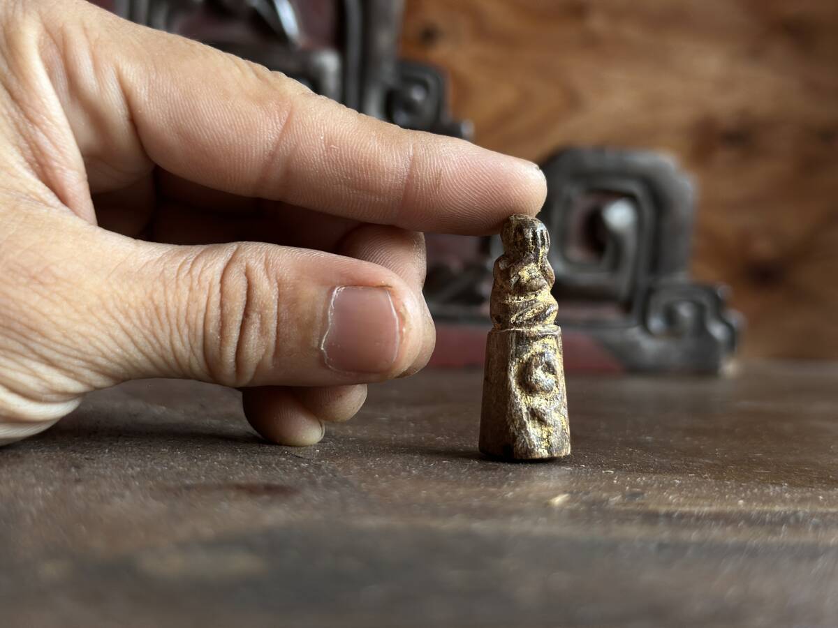 > タイ アンティーク 印相 オブジェ 仏像 仏陀 見ざる 仏教 オブジェ 置物 アムレット 御守り 木彫り 古代 東洋美術 螺髪 右巻き 渦巻き