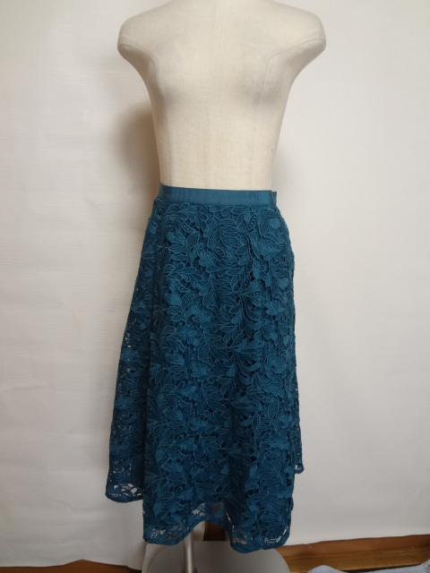- 美品*ナチュラルビューティーPUPOSE*15*レーススカート*大きいサイズ*エルモード*フレアースカート*総レース*グリーン