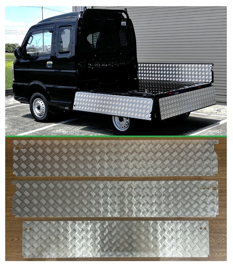 - ■軽トラ スーパーキャリイ DA16T【アッパーメンバーガード付車両】(チェーン無用) 荷台あおりインナーパネル アルミ縞板 3点SET