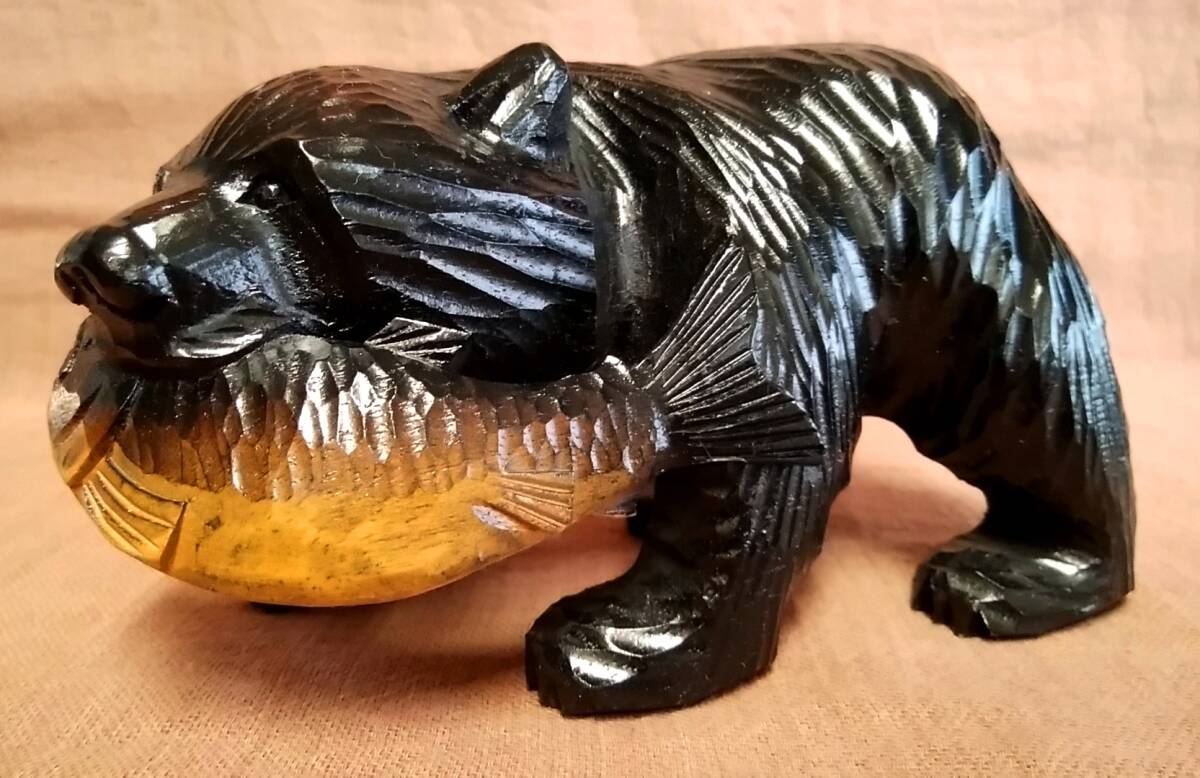 - 木彫り 熊 置物 全長約17cm 彫刻 クマ 木彫 くま 木彫り熊 古民家 インテリア オブジェ 北海道