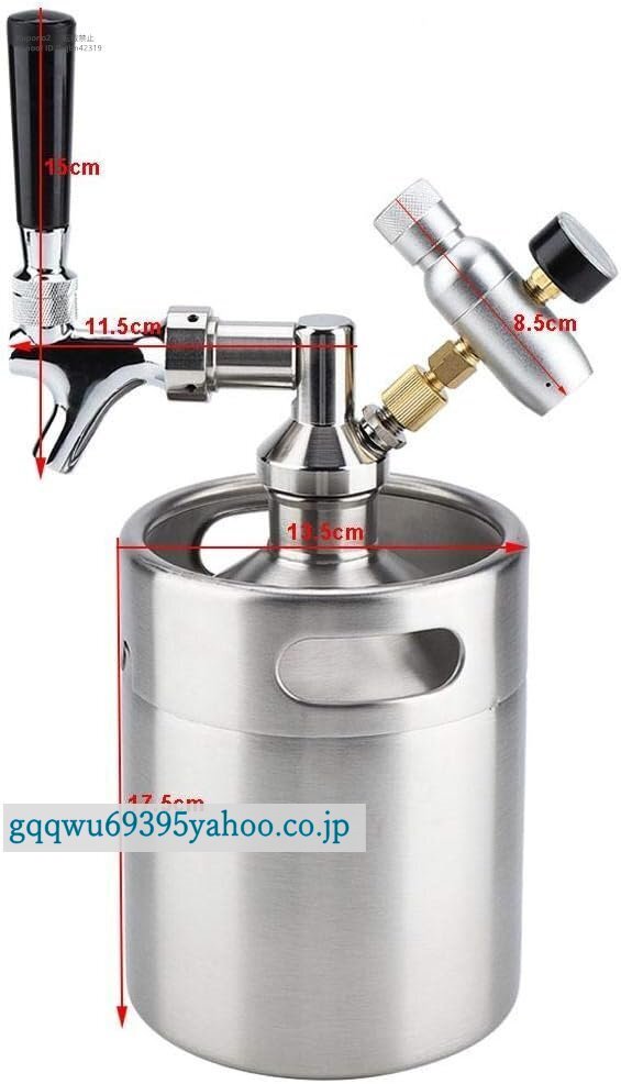- 2L ミニステンレスビール樽 ビールサーバー 蛇口加圧 ビールディスペンサーシステム ビール発酵、保管、調剤用 醸造工芸品