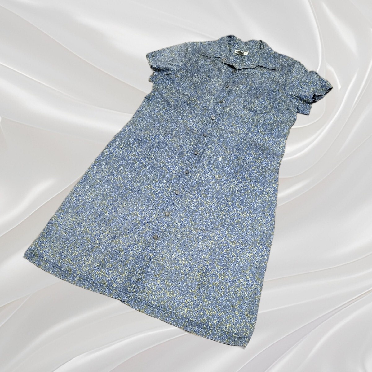 > ★90-00s EDDIE BAUER シャツ ワンピース 前開き コットン 花柄 植物 総柄 サイズL 半袖 ビンテージ オールド エディーバウアー 古着 USED