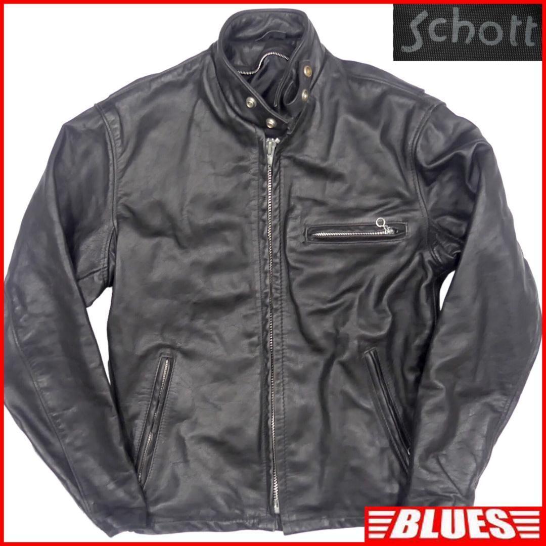 - 即決★Schott★メンズSレザーライダースジャケット ショット 36 黒 本革 シングル 本皮 パンクロック 立襟 ライディング ツーリング