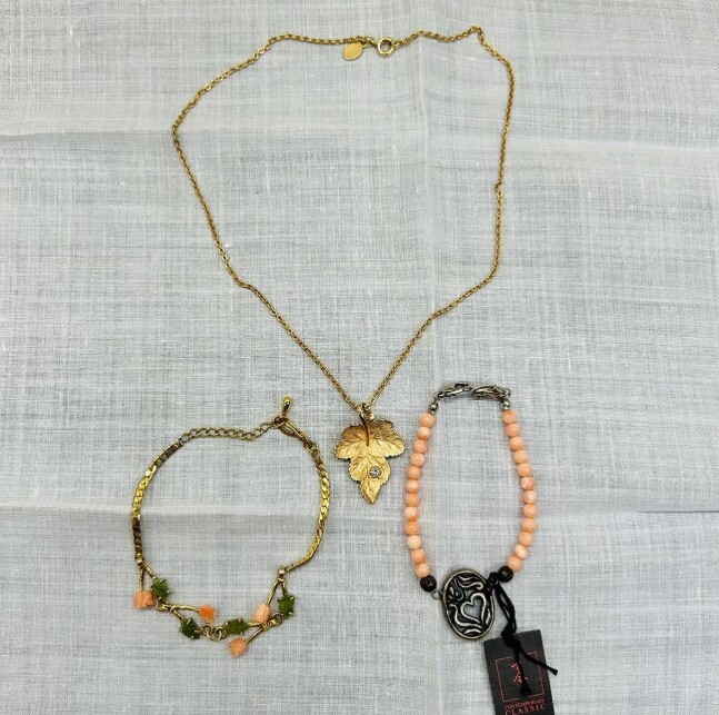 - AVON リーフネックレス 珊瑚の羽織紐 玉石の羽織紐 スタージュエリー 58-2