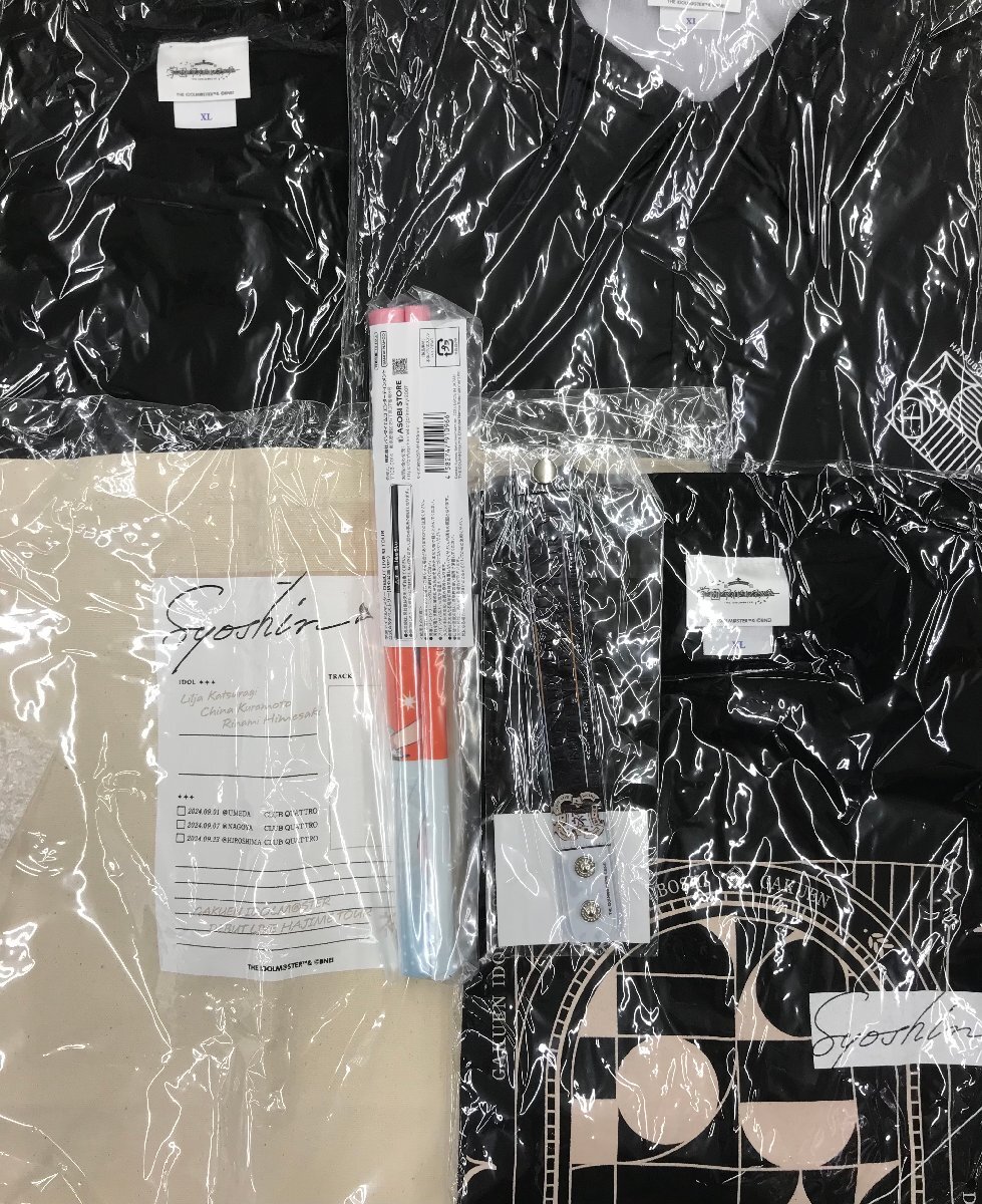 ●タペストリー/リストバンド/トートバッグ/Tシャツ(XL)/ロングスリーブシャツ(XL)/コーチジャケット(XL)のセットです。