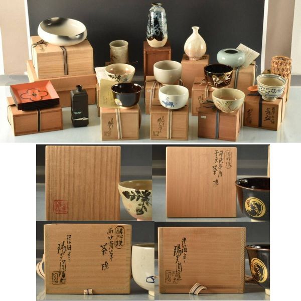- C09467 陽炎園ほか 花器・茶碗・竹製品セット:真作