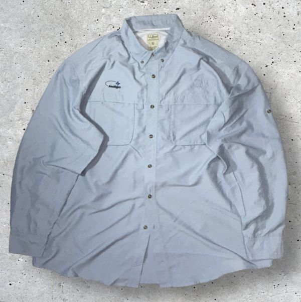 - ★超BIGサイズ★L.L.Bean フィッシング 長袖BDシャツ sizeXXL スカイブルー系 ロゴ&Indigo刺繍 ベンチレーション エルエルビーン 洗濯済み