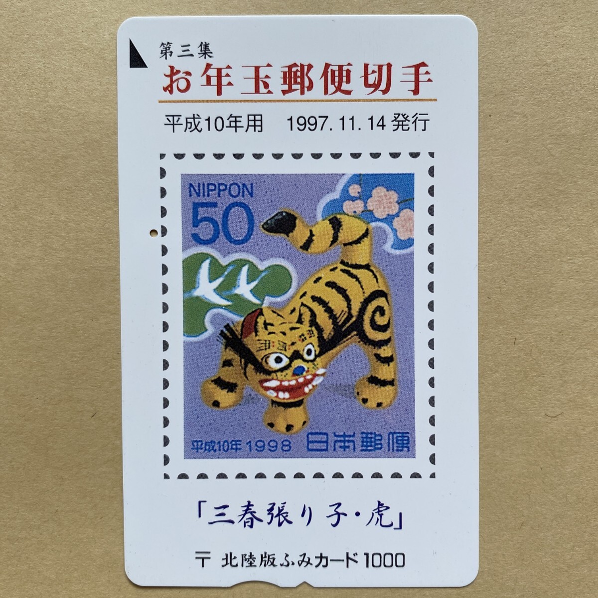 > 【使用済】 ふみカード 北陸版 第三集 お年玉郵便切手 平成10年用 1997.11.14発行 「三春張り子・虎」
