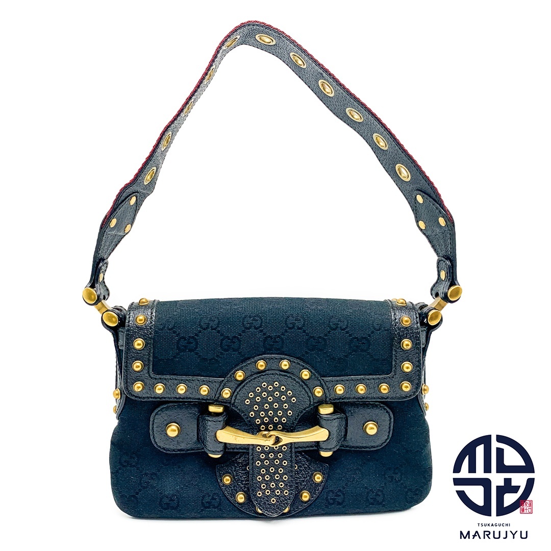 > GUCCI グッチ 144190 シェリーライン GGキャンバス 黒 ブラック ホースビット スタッズ ショルダーバッグ バック カバン 鞄 ブランド