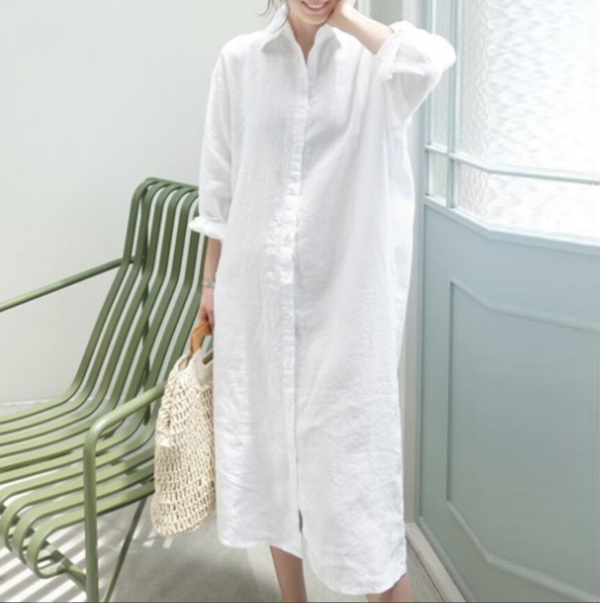 - S-XL*秋美品 カジュアル 大きいサイズ ロングシャツ 無地 ゆったり 着やせ 通勤 入学式卒業式 ロングチュニック シャツワンピース*ベージュ