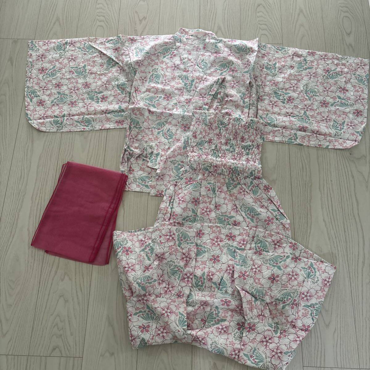 > 未使用●イメージ コレクション IMAGE COLLECTION 帯付き 和柄 トップ&マキシワンピース/トップス/マキシワンピ/ピンク/花柄/女性★1694-2