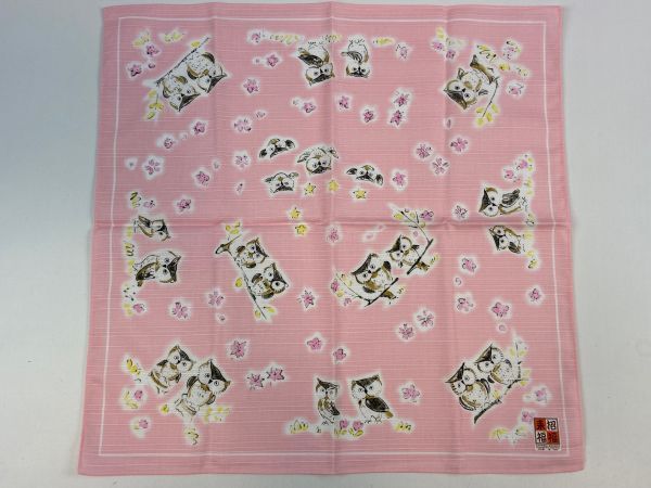 - ▼三作▼送料無料 小風呂敷 シャンタン チーフ ふくろう A-12