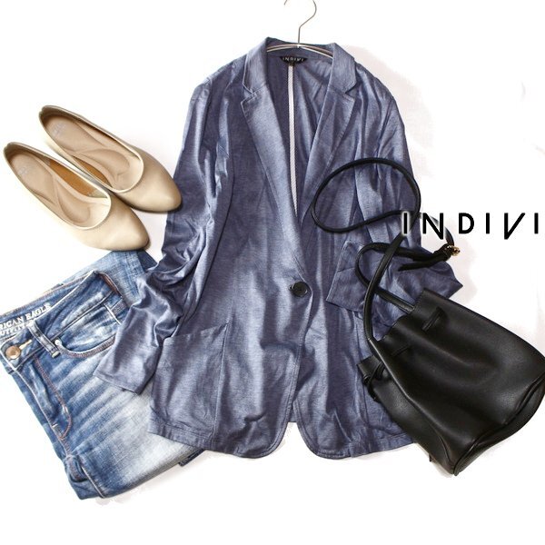 > 美品 INDIVI インディヴィ 綺麗め薄手 リヨセルストレッチ ジャケット 36号 S 春 夏 秋 24D06