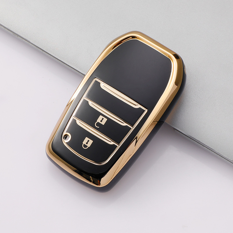 - 【送料無料、匿名配送】トヨタ スマートキーケース TPU キーカバー 黒金 2ボタン ハリアー プリウス 60系