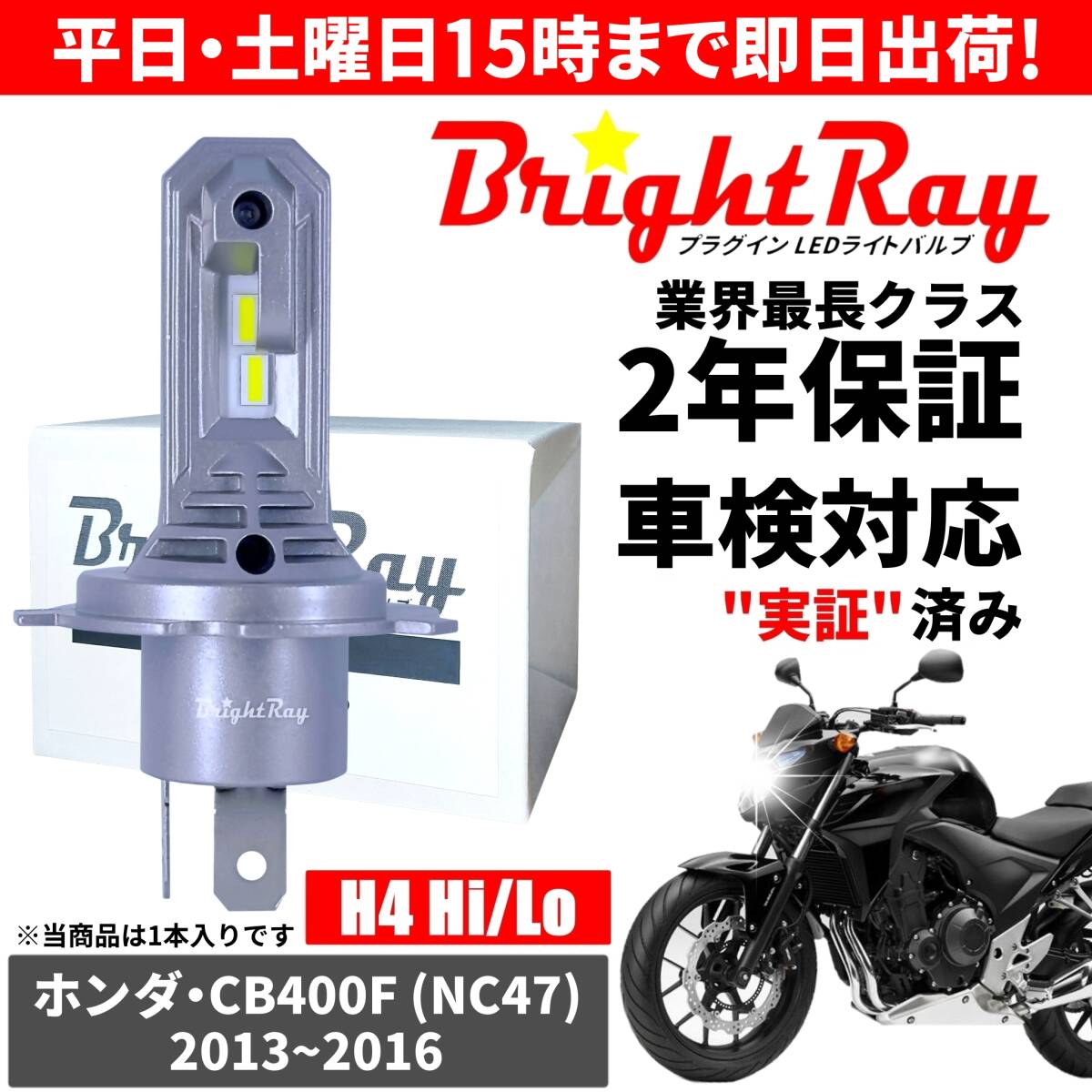 - 送料無料 2年保証 ホンダ CB400F NC47 LED ヘッドライト BrightRay バルブ H4 Hi/Lo 6000K 車検対応 ハロゲンから簡単交換