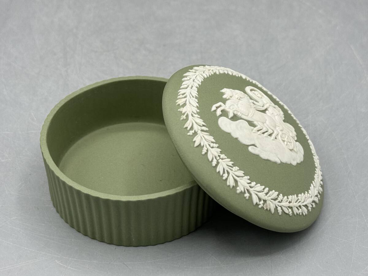 - ウェッジウッド セージ グリーン ジャスパー 小物入れ 蓋付 (765(12) ジャスパーウェア