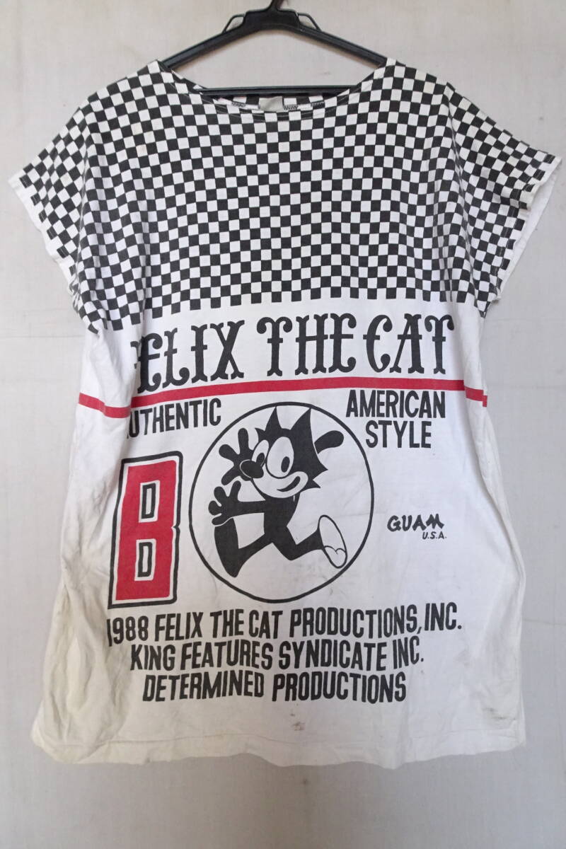 > FELIX/フィリックス/半袖Tシャツ/フレンチスリーブ/ブロックチェック/キャラクタープリント/ビッグシルエット/白/ホワイト/黒(9/5R)