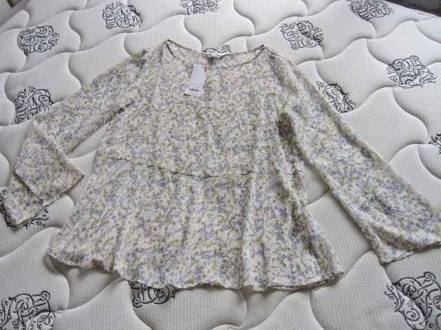 - 新品 ユニクロ トップス 未使用 タグ付き ブランド UNIQLO サイズ L 美品 WOMEN 綺麗 シフォンプリント お洒落 フレア ブラウス ライン 得