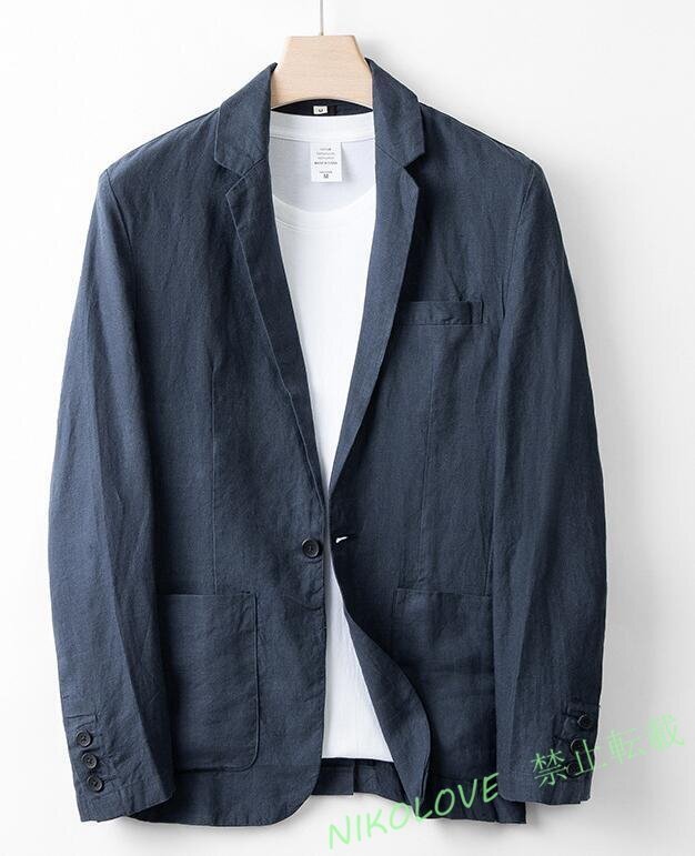 - 新品 リネンジャケット メンズ ワンボタン テーラードジャケット 100%麻 ブレザー スリム 清涼 長袖 無地 通勤 カジュアル LH320