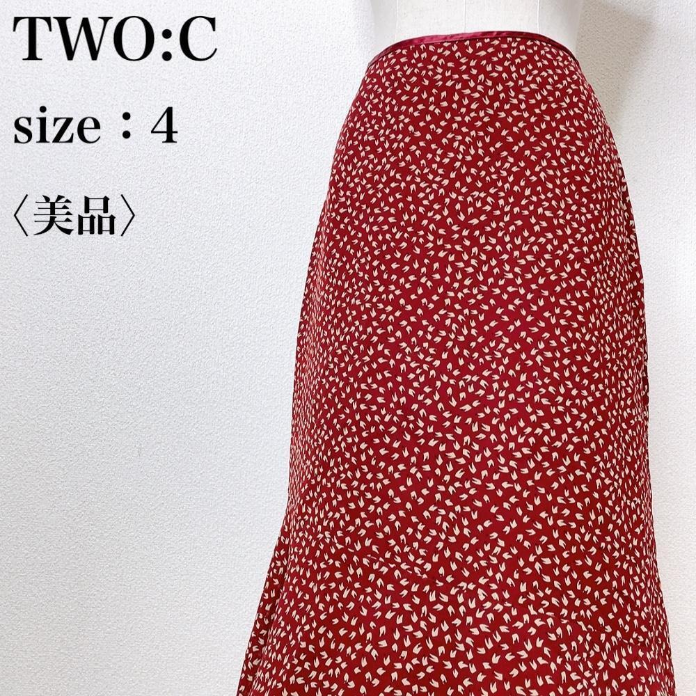 - 【美品】TWO:C トゥーシー ロング タイト フェミニン アシメデザインマーメイドスカート 総柄 かわいい ふんわり 上品 レッド ルック ほ31