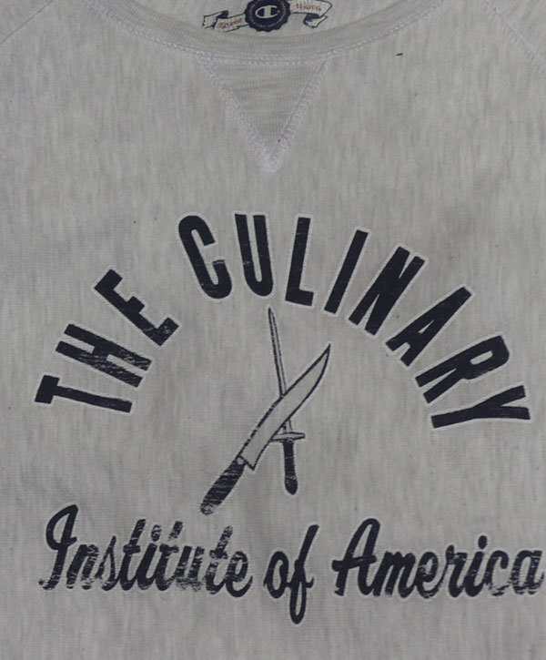 - SW15チャンピオンCHAMPIONアメリカ古着リバースウィーブ スウェット杢グレー系トレーナー前VカレッジTHE CULINARYカリナリー/オールド