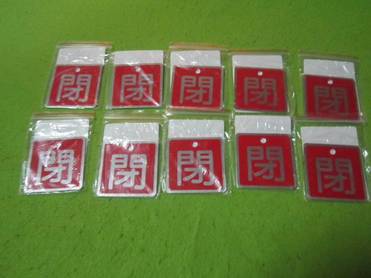 - ◎アルミ製バルブ開閉札(角型) 閉 50x50mm φ5mm穴 厚さ1.0mm 両面印字 赤 【10枚セット】