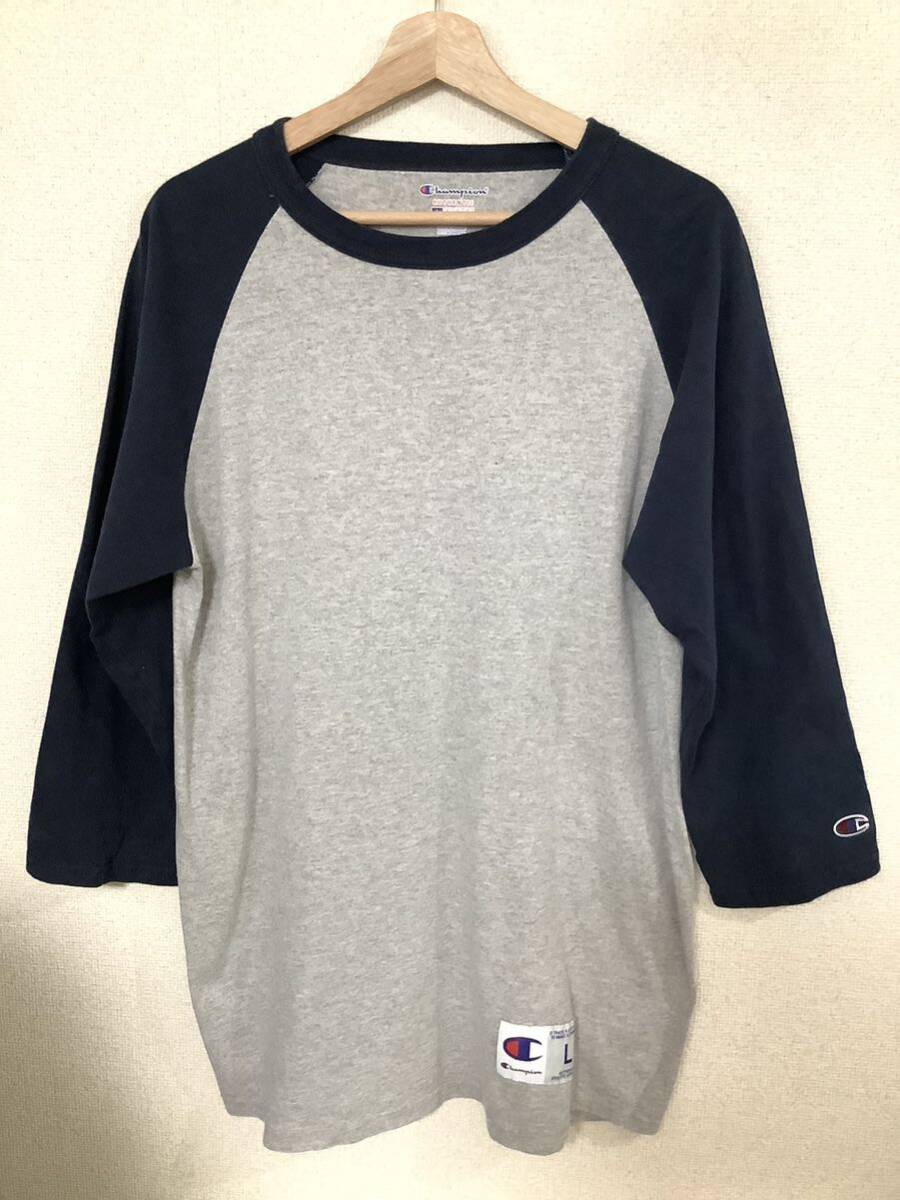- Champion チャンピオン 七分袖ラグランTシャツ クルーネック ネイビー カジュアル アメカジ ストリート 古着 L