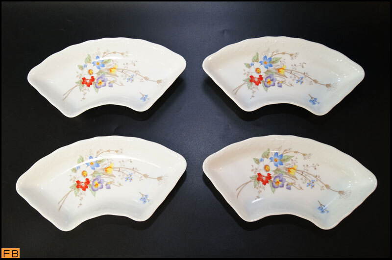 > 1601-ナルミ◆プレート 4枚 草花 トレイ 昭和レトロ 食器 取り皿 プレート 鳴海製陶 NARUMI