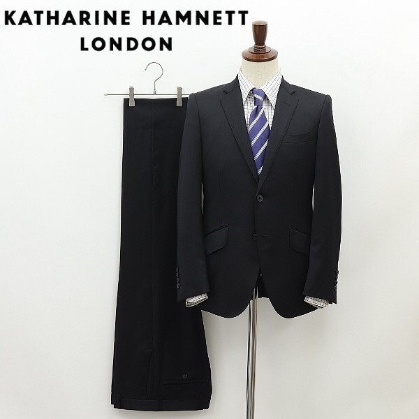 - ◆KATHARINE HAMNETT LONDON キャサリンハムネット ロンドン シルク混 2釦 スーツ セットアップ 黒 ブラック S