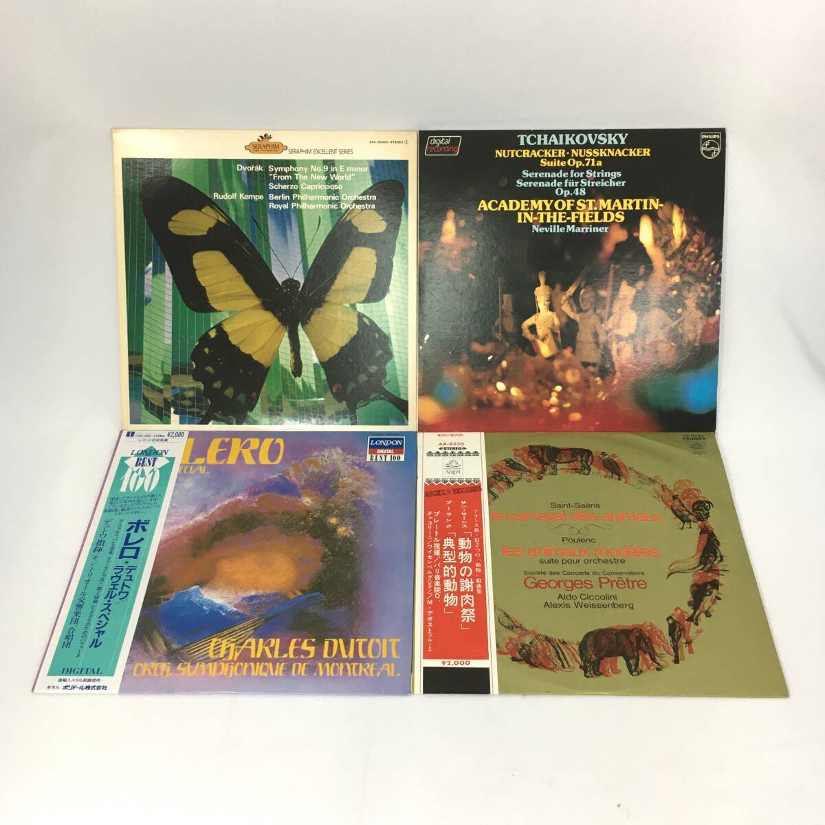 - 【クラシック LPレコード 4枚セット】ケンペ・新世界より マリナー・くるみ割り人形 デュトワ・ボレロ プレートル・動物の謝肉祭