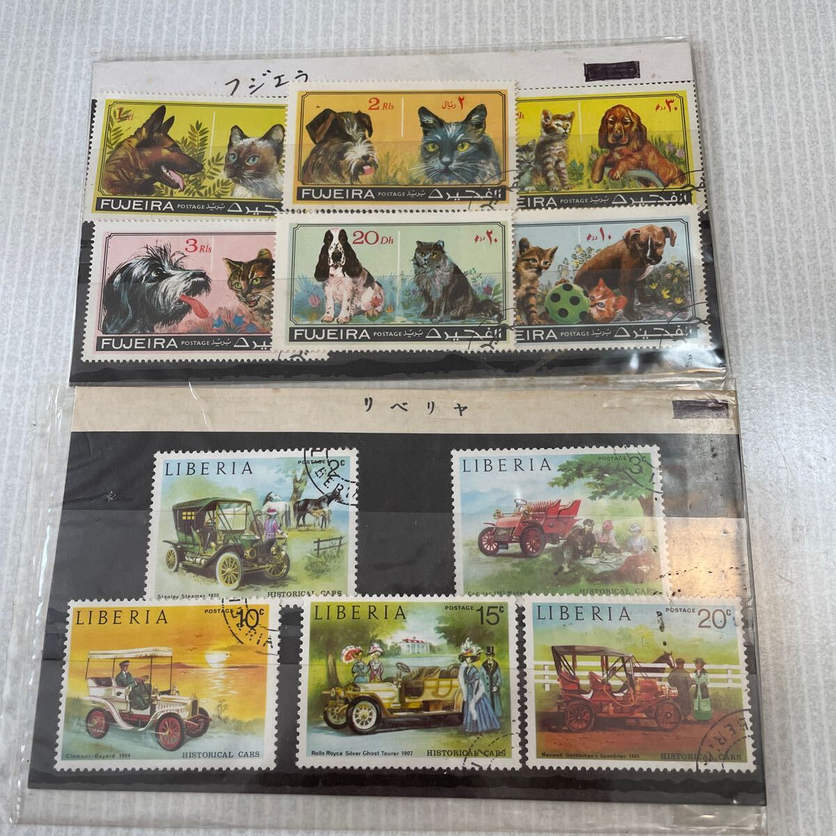 - コレクション切手 リベリヤ フジエイラ 郵便局 使用済み切手 車 猫 犬 中東