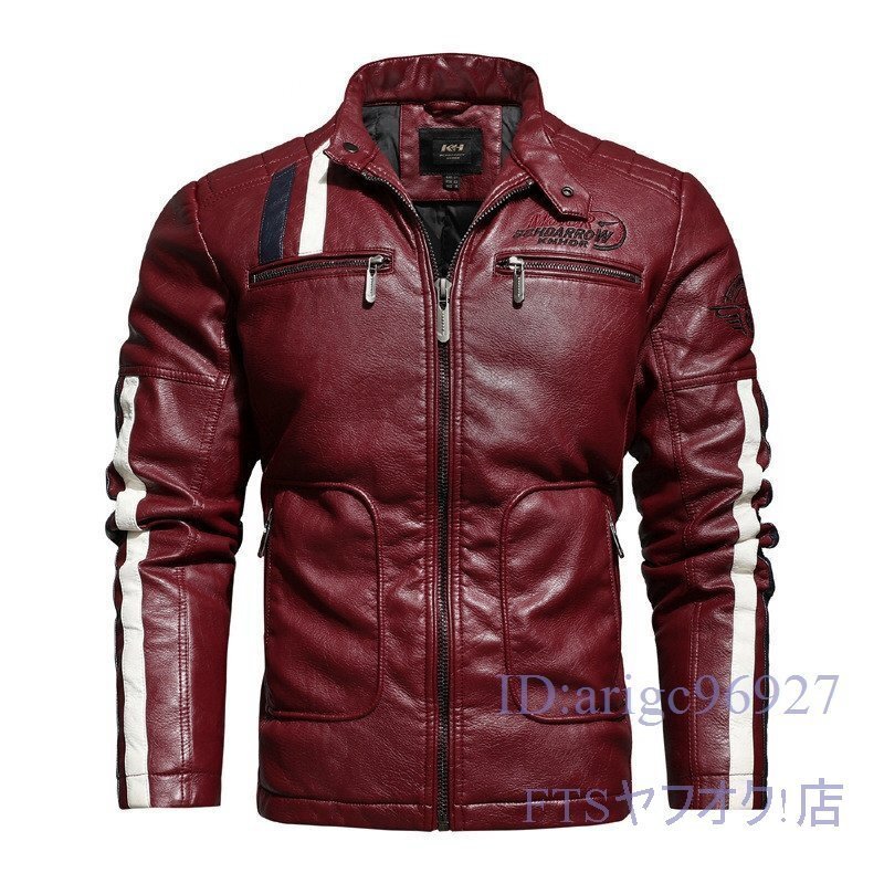 > T878☆新品ライダースジャケット ☆メンズ 中綿ジャケット トレンド ブルゾン コート カジュアル バイクウエア【KH-168】レッド L