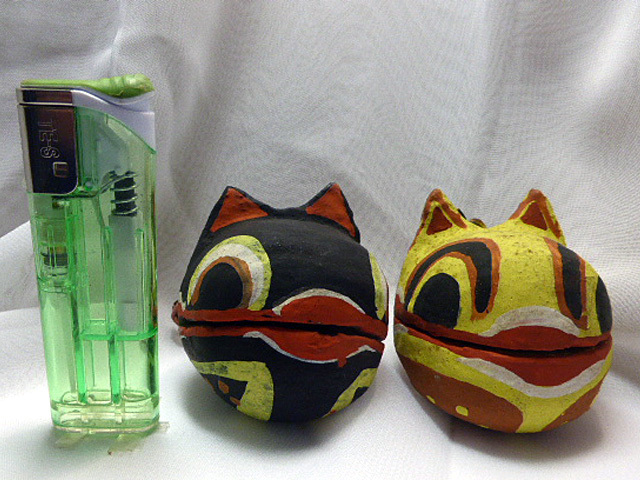 - da61 郷土玩具 めでたや 犬頭 土鈴 縁起物 二個セット ディスプレイ/オブジェ/置物・240912