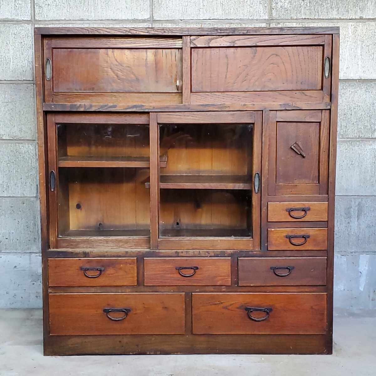 - 宮城県 引取限定品 和家具 茶箪笥 茶棚 (検索 アンティーク 食器棚 飾り棚 レトロ 古民家 古家具 収納棚 インテリア ディスプレイ