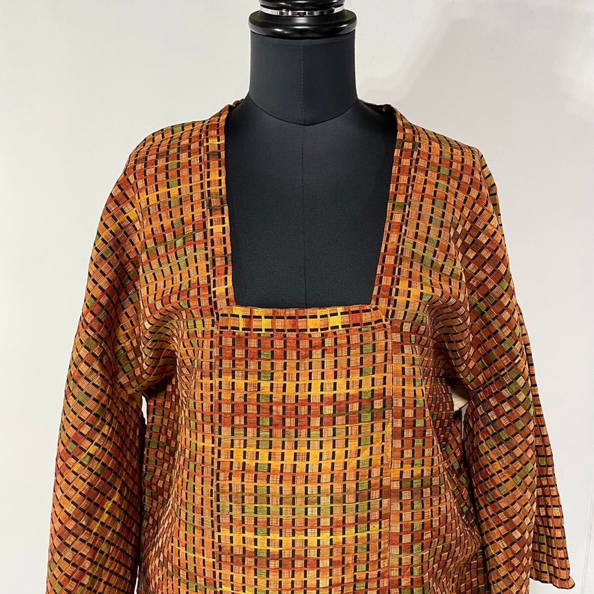 - 着物 羽織 道中着 道行コート 袷 チェック 黒 緑 黄色 朱色 オレンジ