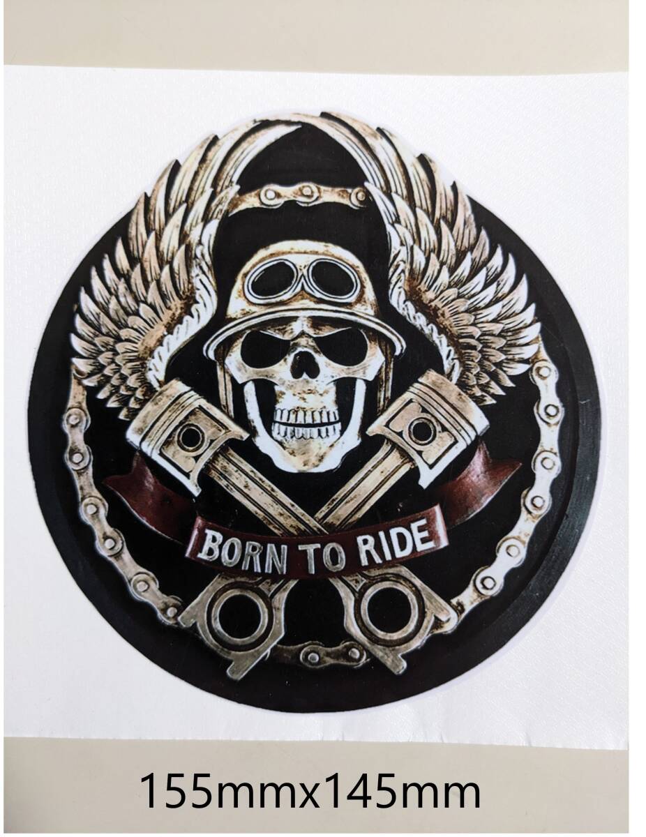 - 【特価・激渋♪155mmx145mm BORN TO RIDE】スカルステッカー 骸骨ステッカー ヘルメット ハーレー・ピストン・翼