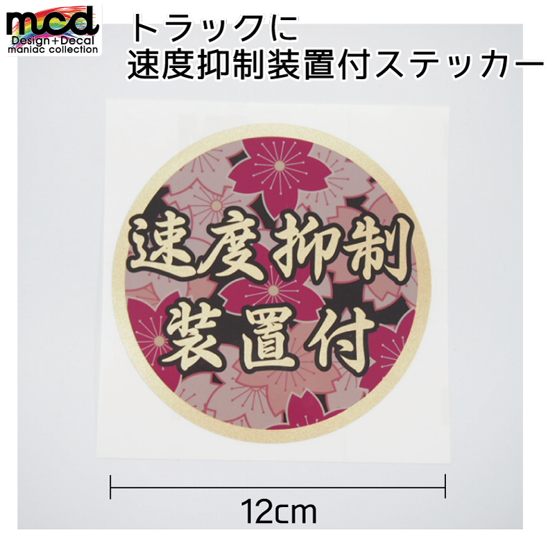 - トラックに 速度抑制装置付 ステッカー 1枚 桜 金文字 12cm ダンプ 大型車 和柄 デコトラ 和風 ゴールド